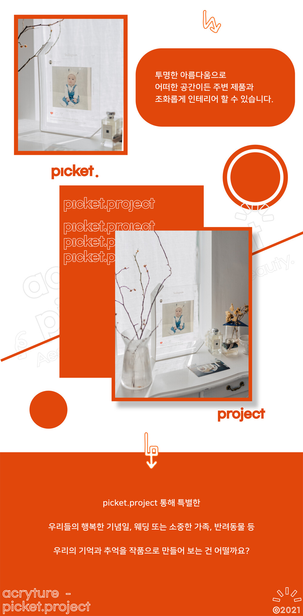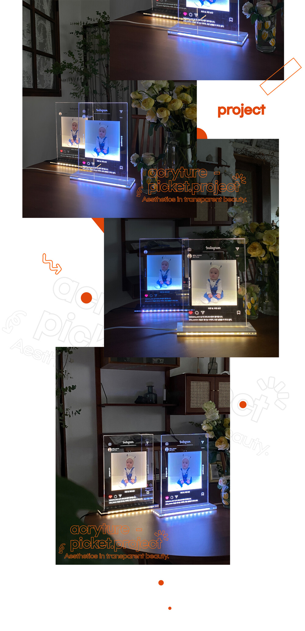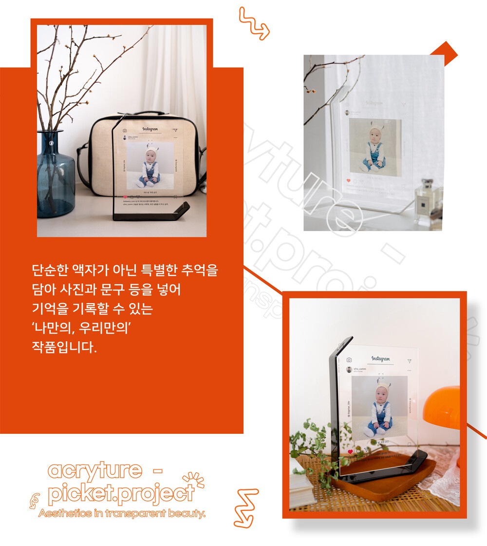 단순한 액자가 아닌 특별한 추억이 담긴 사진과 문구 등을 넣어 기억하고 싶은 순간을 기록할 수 있는 "나만의, 우리만의" 작품입니다.